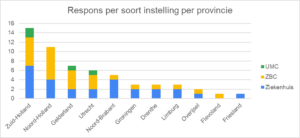 50 vakgroepen vulden de vragenlijst in. Zij vertegenwoordigen 26 Ziekenhuizen, 21 ZBCâs en 4 UMCâs. In totaal vertegenwoordigen de respondenten circa 400 oogartsen, wat neer komt op ongeveer 57% van alle oogartsen in Nederland is.